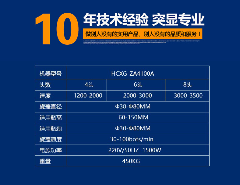 該機借鑒國外先進技術,結合客戶需求研發而成。該機集自動進瓶、自動理蓋上蓋、自動抽真空旋蓋、自動出瓶于一體,生產效率高,運行穩定可靠,是食品醬料、飲料、保健品等行業馬口鐵三(四)旋蓋的抽真空旋蓋設備。